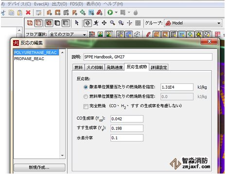 -PyroSim程序中能很方便地输入已知的材料燃烧反应。
